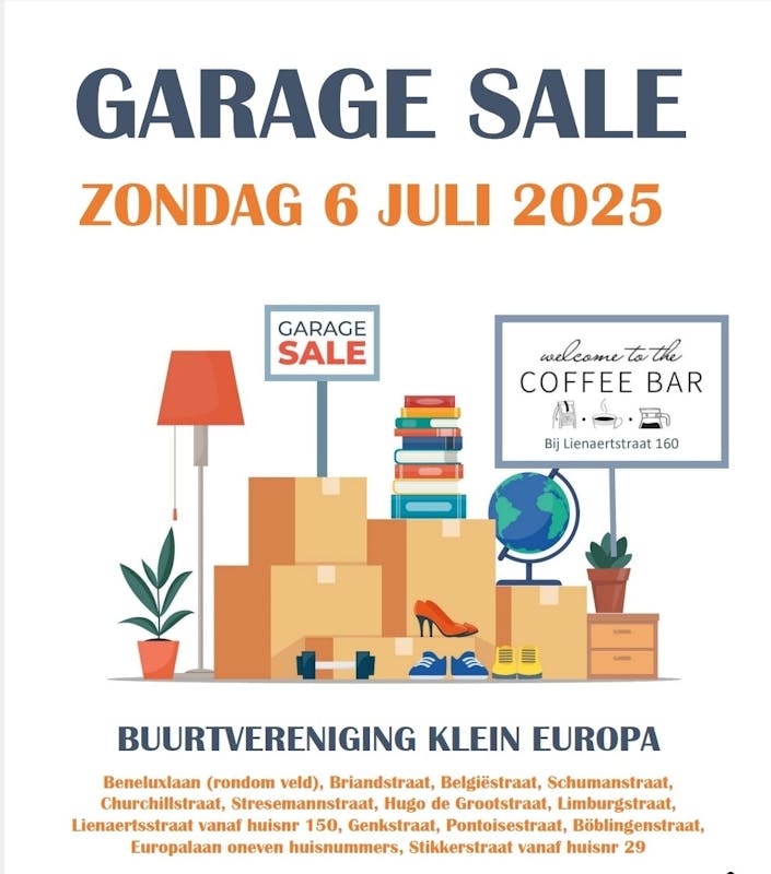 ZONDAG 6 JULI 2025 GARAGESALE BUURTVERENIGING KLEIN EUROPA GELEEN-ZUID VAN 10-15 UUR.