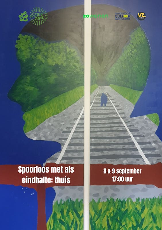 Op 8 en 9 september, 17:00 uur, vindt de voorstelling Spoorloos met als eindhalte: thuis plaats. Tijdens deze voorstelling presenteren 14 jongeren die deze zomer meededen aan Thuis in je hoofd hun kunstwerken.