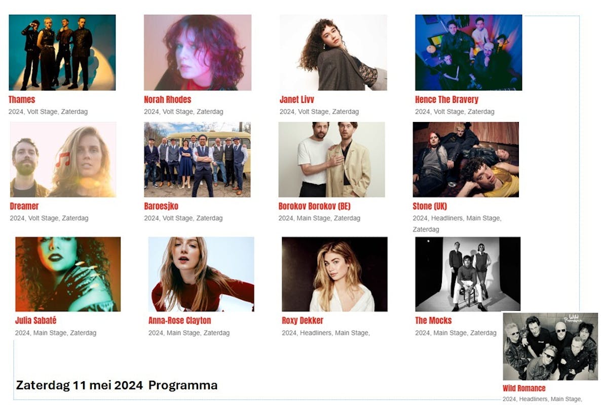 32 Ohm, Anna-Rose Clayton, Baroesjko, BLUAI (BE), Borokov Borokov (BE), Brass Rave Unit, Dreamer, Droom Dit, Hence The Bravery, Janet Livv, Jean Lucas, Julia Sabatรฉ, Meltheads (BE), Mt. Atlas, Norah Rhodes, Primaat, Roxy Dekker, Ruby Mus, Smoove and Turrell (UK), STONE (UK), Thames, The Mocks, Videocall, WHYBE en Wild Romance.