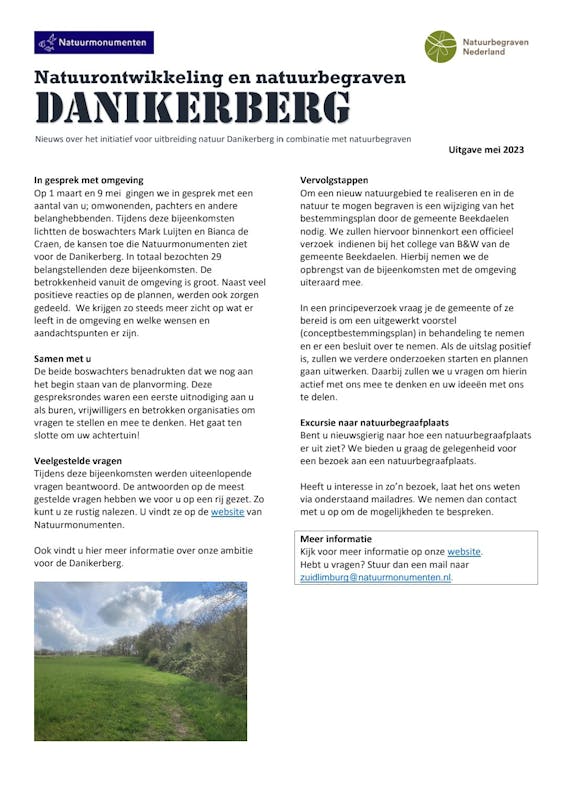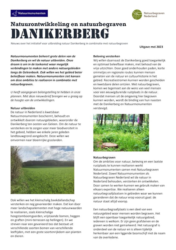 De nieuwsbrief met informatie over de plannen voor natuurontwikkeling en natuurbegraven op de Danikerberg.