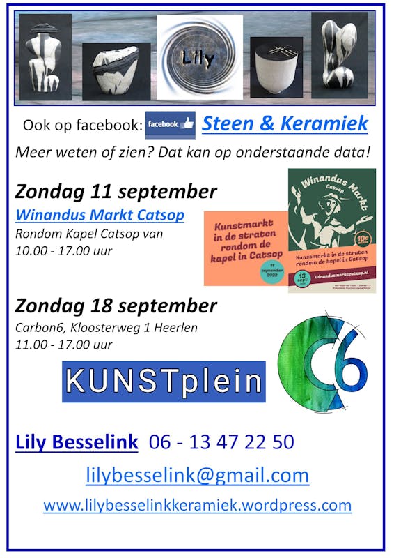 Komende zondag 11 september wordt de Winandus Markt Catsop voor de 10e maal georganiseerd. Ik ben er ook aanwezig met een selectie van mijn keramiekwerk.