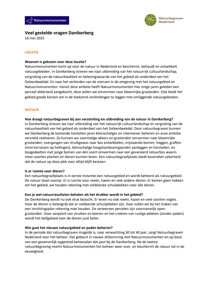 Natuurmonumenten/Natuurbegraven Nederland is voornemens de Danikerberg/het Danikerbos grotendeels in te richten als natuurbegraafplaats