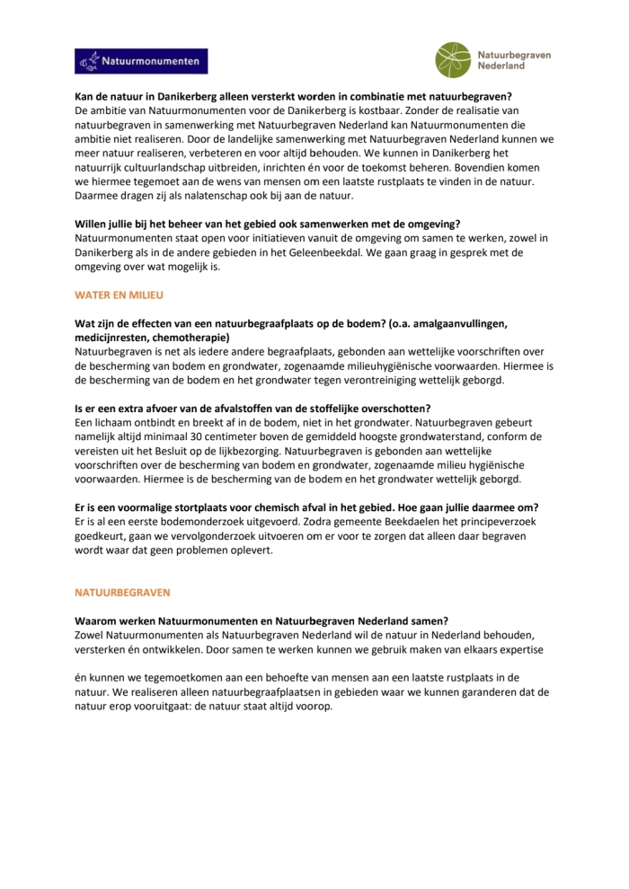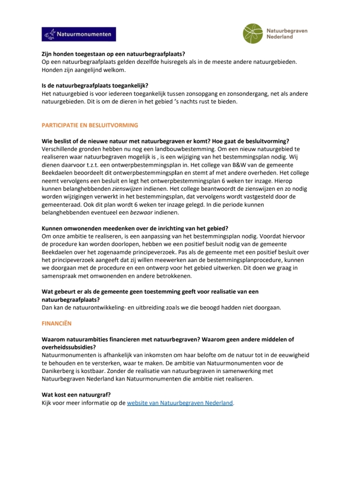 Hieruit kan ook worden geconcludeerd dat Natuurmonumenten, samen met de gemeente Beekdaelen, voorstander zijn van de nieuwe inrichting als natuurbegraafplaats.